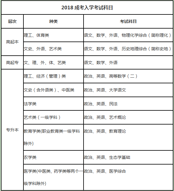 据相关老师介绍,2018年成人高考考试将于10月27日至28日举行。其次,2018年成人高考报考层次有三种,分别是高起专、高起本以及专升本,学员选择不同的层次进行报考,其考试时间安排也是有所差异的。具体如下: